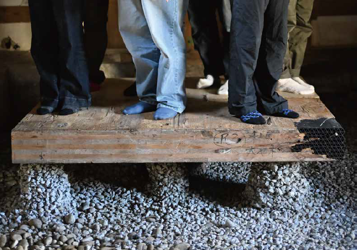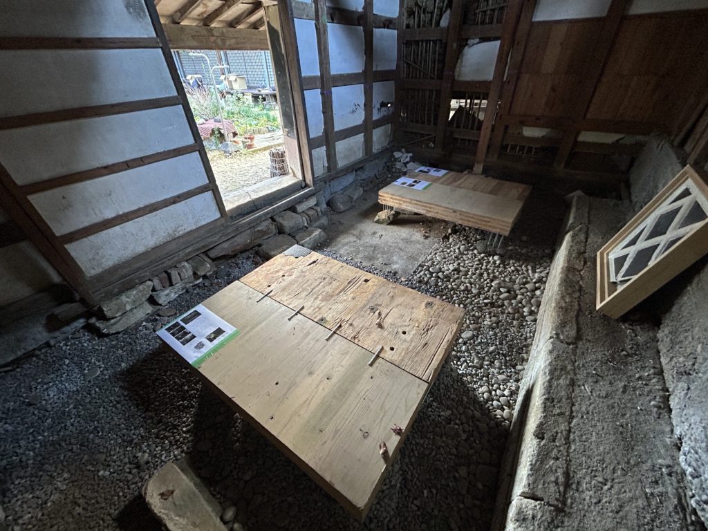 蔵をこれから修理していくにあたって、作業用の台をつくり、そこに作業の跡が付いて、また解体され別の場所に運ばれることをイメージしました。