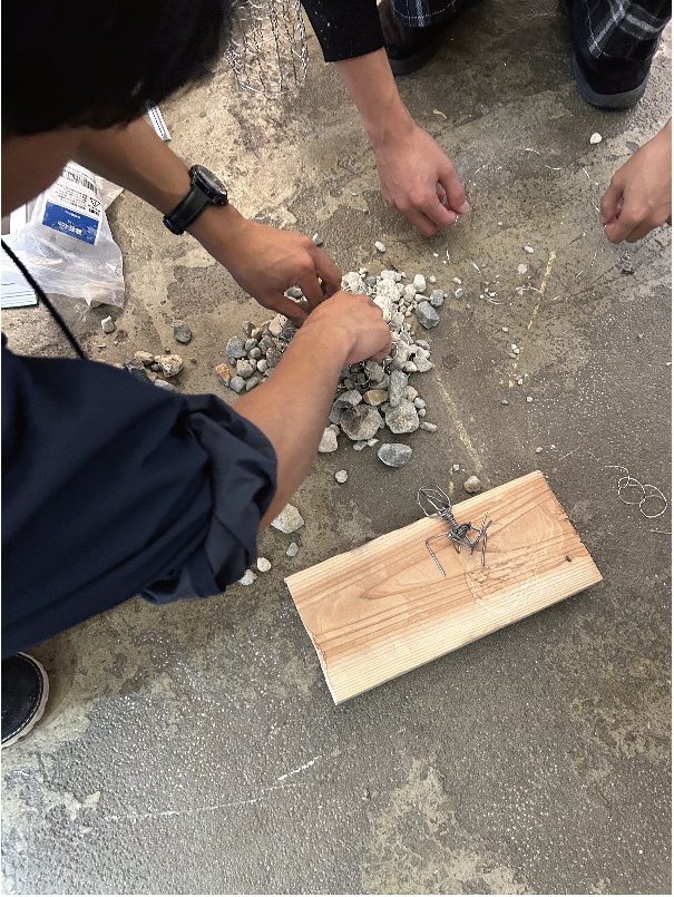 履修者14名を2グループに分けて、Aグループは石を積む案です。