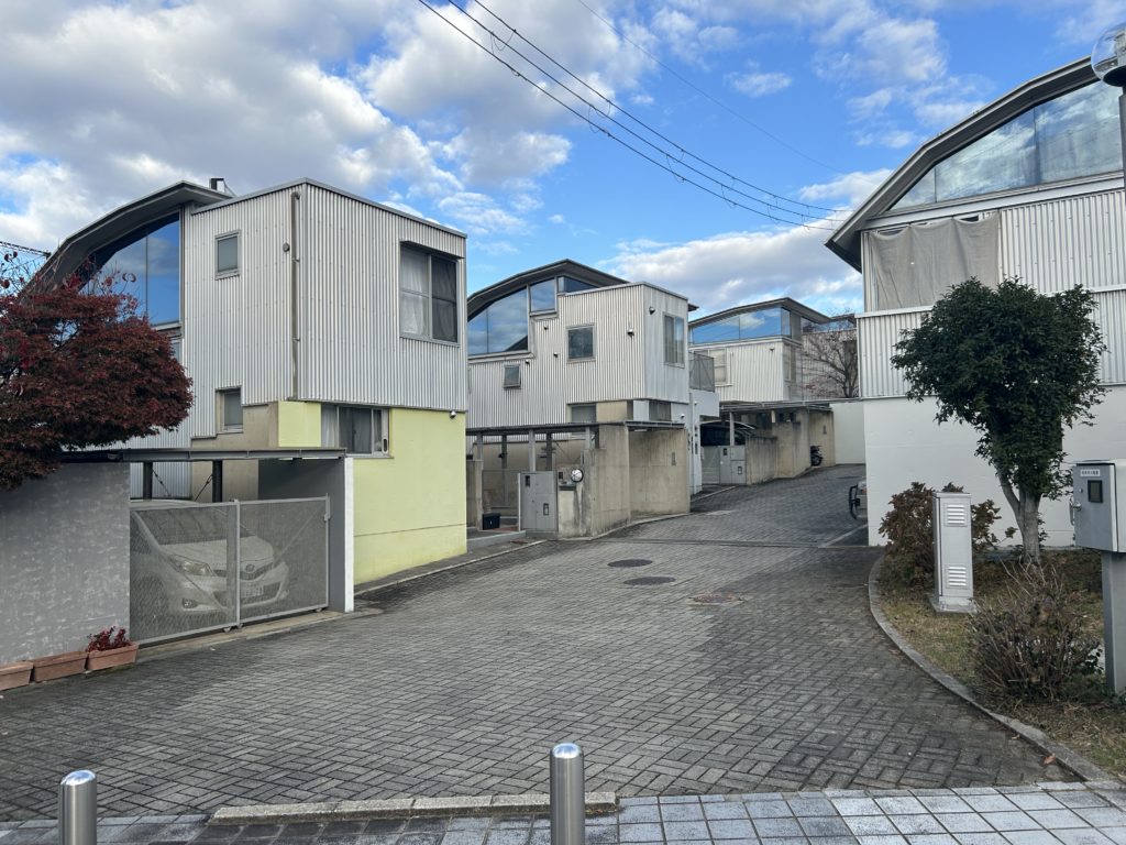 ここから二手に分かれて、住宅に思い入れのあるメンバーはコモンシティ星田へ(他はおにクルへ)。コモンシティ星田は、ここから二手に分かれて、住宅に思い入れのあるメンバーはコモンシティ星田へ(他はおにクルへ)。コモンシティ星田は、積水ハウスや宮脇檀をはじめとする多くの建築家が計画に関わった住宅地です。坂本一成街区は、設計密度が高く、まとめあげたエネルギーの大きさに茫然。宮脇檀街区はカーブした道路や二重の植栽、木を植えたクルドサックなど、良い住宅地だなぁと素直な感想。